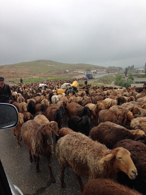 道中、アレキサンダー大王が東征の際立ち寄ったイスタンダールという湖の辺りで昼食を摂り5000m級の山の山中では2000頭あまりの羊の群とも遭遇しました。ちなみにタジキスタンはシルクロードの上にあり、北にキルギスタン、カザフスタン、西にウズベキスタン、南にアフガニスタン、パキスタン、東にパミール高原を隔てて中国と言うユーラシア大陸のへそに位置します。東征を試みたアレキサンダー大王はパミールに行く手を阻まれ、ホジェンドの王女オクサナ妃と結婚、その後、南下してインドの象軍団に敗れて西へ戻りましたし、お釈迦様の涅槃仏が現存する西辺もドゥシェンベで、ここタジキスタンはユーラシア大陸の東西の分岐点と言えます。