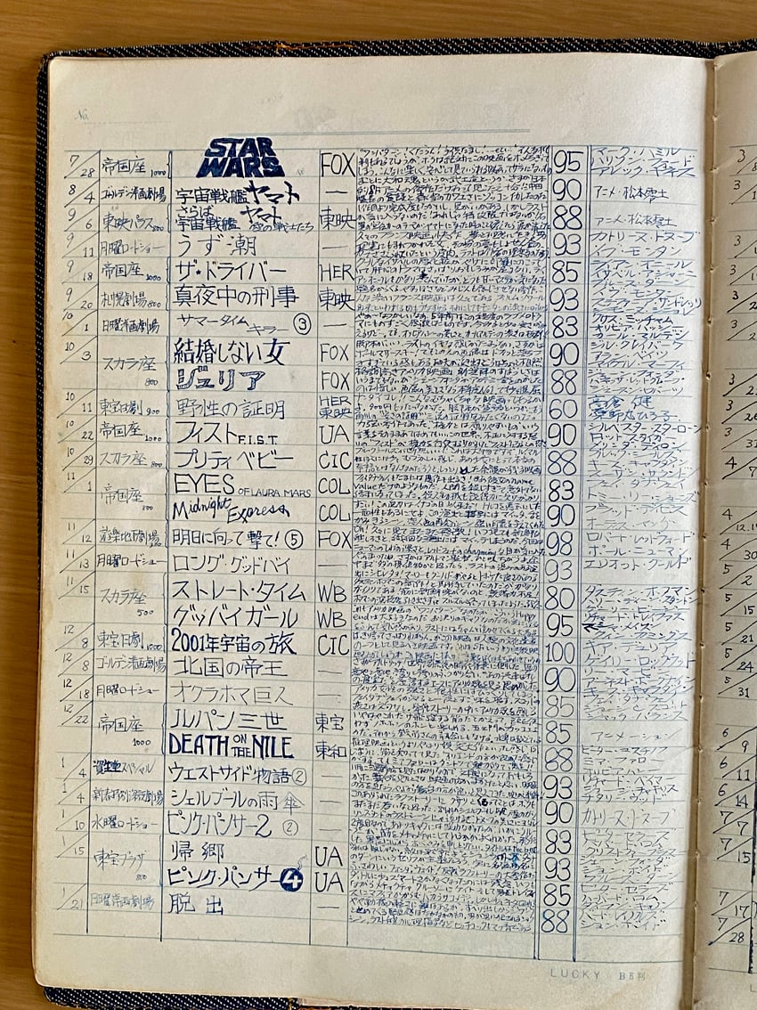 下の写真は私が南高三年の時に記した映画ノート。今では老眼となり、自分が書いた小さな文字をちゃんと読めなくなっているのだ。トホホ・・・。